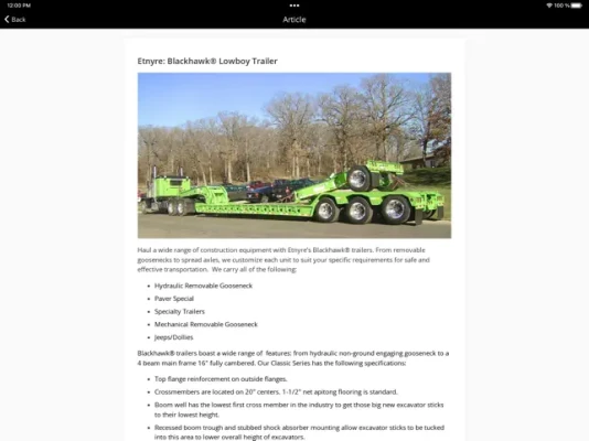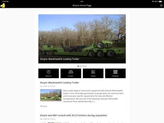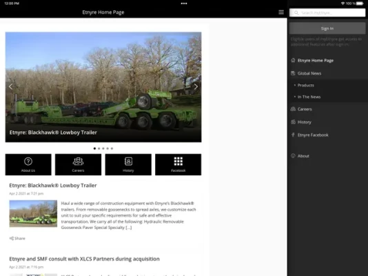 • News - stay up to date with the latest news. Push notifications allow you to immediately see exciting news from the world of Etnyre International.