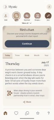 Discover the mysteries of the universe with Mystic. Learn through dynamic content, engage with cutting-edge AI, and connect with expert astrologers on demand.