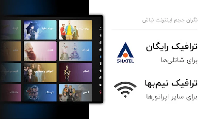 · No internet data usage (Free of charge) for watching over Shatel.