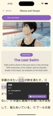 Read (Interactive Stories) – Enjoy engaging short stories with instant translations and the ability to save new words to your study list.