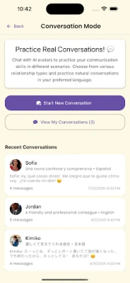 Chat (AI Conversations) – Practice real-life dialogue with 100+ AI characters from different backgrounds, cultures, and speaking styles.
