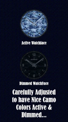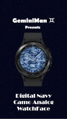 Inspired by many WatchFaces that I have seen on the web, This is a Wear OS Navy Digital Camo Analog Clock with health features (steps, calories, distance and HR)...
