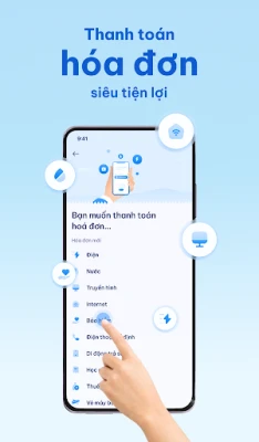 - Thanh toán dịch vụ: Thanh toán hóa đơn điện, điện thoại di động, điện thoại cố định, internet, truyền hình cáp, … chỉ bằng vài thao tác đơn giản trên ứng dụng.