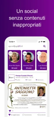Per essere vicino ai tuoi cari in questi momenti delicati abbiamo creato l’app di Necrologi24, il social dedicato a questo, dove puoi vedere tutti i manifesti e necrologi dei comuni per te importanti.