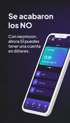 Neomoon es un ecosistema financiero 100% digital en dólares que simplifica tus pagos y cobros del día a día. Nuestra misión es brindarte múltiples vías para acceder al dólar de forma segura y con las comisiones más bajas del mercado.