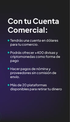 Cuenta comercial disponible para negocios.