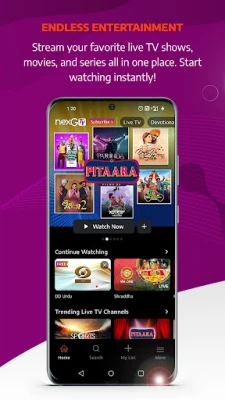 Watch your favourite Live TV channels, Hollywood Movies, Web Series, Videos, and more on the go without any interruption on your mobile phone with nexGTv. Streaming over 100+ LIVE TV channels showing Live News, Bollywood Movies, Regional Entertainment, TV Series, Reality TV Shows, Cricket, Tennis & Sports Highlights, Music Exclusives, Bollywood Songs, Devotional songs, Bhajans, and Live Aarti, as well as Videos on Demand on your Mobile TV; this Mobile Entertainment app has taken Mobile Live TV streaming, Live News on Mobile and Online Video viewing experience to the next level.