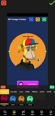 🚀 download the app 🚀 open the app and import any image 🚀 select your filters and creativity 🚀save and your nft is now ready