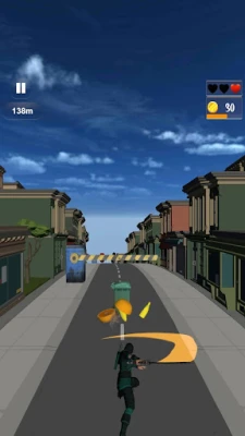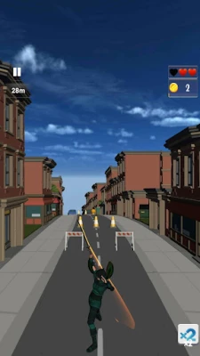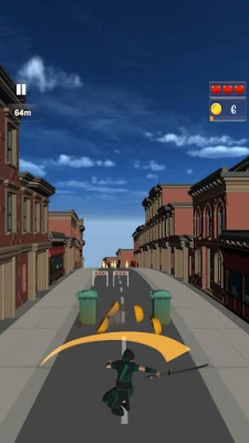 Like other ninja running games offline, you can roll under fences. Beware of dogs that may bite or bump into you as you move on the road.