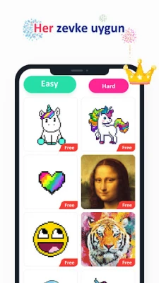 Pek çok rağbet görülen oyunlar 2022 önünüzde! Ücretsiz piksel boyama oyunları internetsiz indir ve No.Pix'te sanat yapıtlarını yarat. Boyama oyunları sayılarla renklendirmeye katılarak enteresan bir yolculuğun keyfine varacaksın! Aile ve arkadaşlar ile resim oyununu oyna, aranızda hızlandırılmış video paylaş Piksel boyama internetsiz oyunu, konsantrasyon, sabır ve renk eşleştirme becerilerini geliştirebilir. Farklı kategorilerde ve renklerde piksel sanatı resimleri seçeneği: çizgi film, manzara, aşk, anime, hayvanlar, araçlar, çiçekler, kalpler, atlar, tek boynuzlu at, mandala veya diğer konulardaki resimleri sayılarla boyama oyunu internetsiz de bul. Boyama oyunları sayılarla oyna, boyama oyunları büyükler için. No.Pix sayılarla boyama internetsiz oyunlarında stres at ve her yerde resim oyunları internetsiz keyfini çıkar. Yetişkinler boyama oyunlar ında endişeleri ve stresleri arkalarında bırakıp rahatlayabilir, çocuklar ise piksel boyama oyunlarında tanıma ve diğer yeteneklerini geliştirebilir! En çok tercih edilen piksel oyunlar 2022 işte burada! Sayılarla boyama oyunlarına bayılır mısın? No.Pix'i seç ve sayılarla boyama oyunları nda renklendirmeye başla!