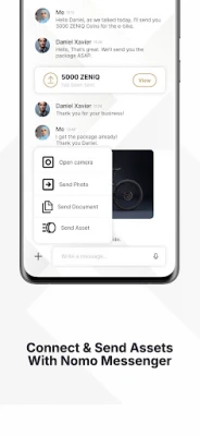 Stay connected with Nomo Messenger, a decentralised messaging platform where you can chat, send voice messages, share files, and transfer digital assets or WebOns securely—all in one app. Enhance your security with PIN protection and biometric login options, ensuring only you can access your assets.