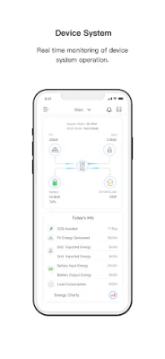 -Easily verify system health and performance. -View energy production by month, day, or hour. -Remote switching of system working mode.