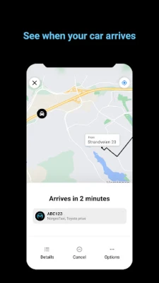 We notify you both when the taxi is on its way and when it has arrived. You can also follow your car on the map. The app provides you with the taxi's car number so you can smoothly and easily find your car! You find the taxi's car number on the back of the taxi sign.