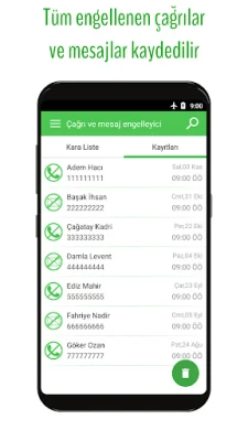 * Çağrı engelleme günlüğü.