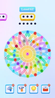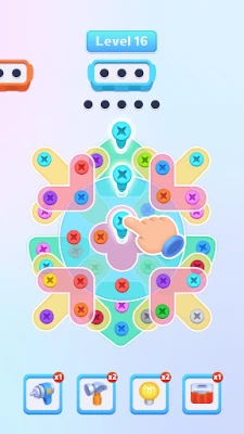 Nuts Out is a casual puzzle game. Glasses of various shapes and colors are covered with screws of various colors. You need to collect screws of the same color into the screw box. Collect all the screwdriver screw boxes to win the game.