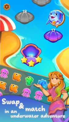 The core gameplay is easy to learn but offers surprising depth. Swap colorful sea creatures to create lines of three or more, triggering exciting chain reactions and earning points. As you progress, you'll encounter increasingly intricate levels that will test your matching skills and strategic thinking.