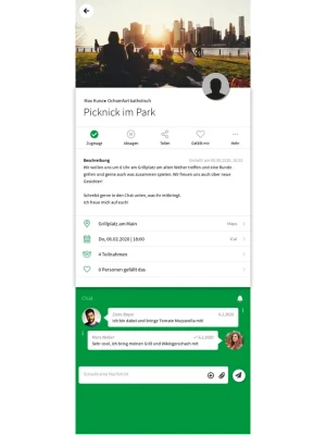 Tausche dich mit anderen innerhalb deiner Gruppe aus. Im Gruppenchat kannst du auch Beiträge posten, um z.B. auf wichtige Veranstaltungen hinzuweisen.