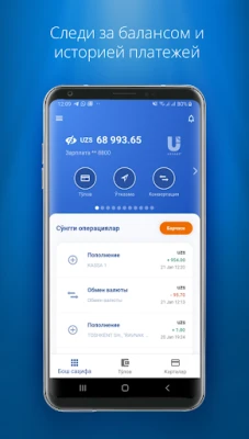 - Переводить деньги между своими картами UZCARD, HUMO, VISA, MasterCard* и на любую другую карту UZCARD или HUMO