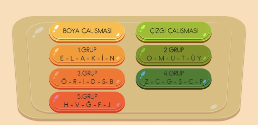 Boyama çalışması ve çizgi çalışması ile öğrenmeyi eğlenceli hale getirdik.