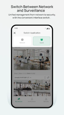 The Omada Guard app integrates with Omada Central for managing security devices like IPCs and NVRs while enabling seamless switching with Omada Network for unified security management. Easily add, configure, monitor, and control connected devices. Create an account, add IP cameras, and access live or recorded footage anytime. Instant alerts notify you of detected targets and anomalies.