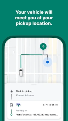 We use the app to navigate you to a nearby stop where you will be picked up. This stop can also be purely virtual and will be displayed on the map on your mobile phone. You can follow the live tracking of your vehicle on its way to you.