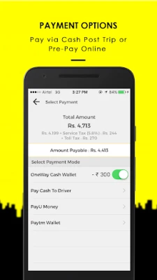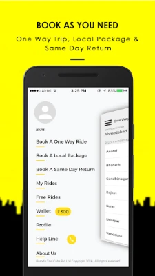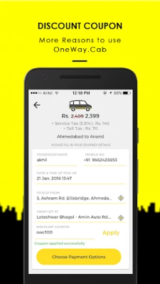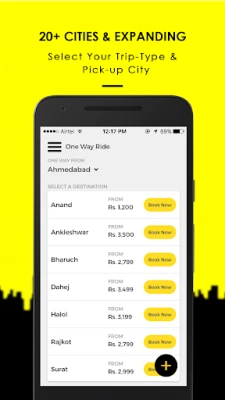Book your taxi in easy steps using OneWayCab app: 1. Select your Pick-up city, Destination city, Car type