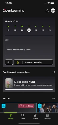 Esplora un mondo di opportunità educative personalizzate su misura per te nella sezione "Per Te". Grazie al nostro avanzato motore di intelligenza artificiale, ti offriamo una vasta gamma di contenuti formativi selezionati appositamente per soddisfare le tue esigenze di apprendimento. Che tu stia cercando di affinare le tue abilità professionali o di esplorare nuovi interessi, siamo qui per guidarti verso il successo. Hai un argomento specifico in mente? Nessun problema! Utilizza la potente funzione di ricerca nella sezione "Cerca" per trovare rapidamente ciò che ti interessa. Basta digitare una parola chiave o selezionare un argomento dalla nostra vasta gamma di categorie.
