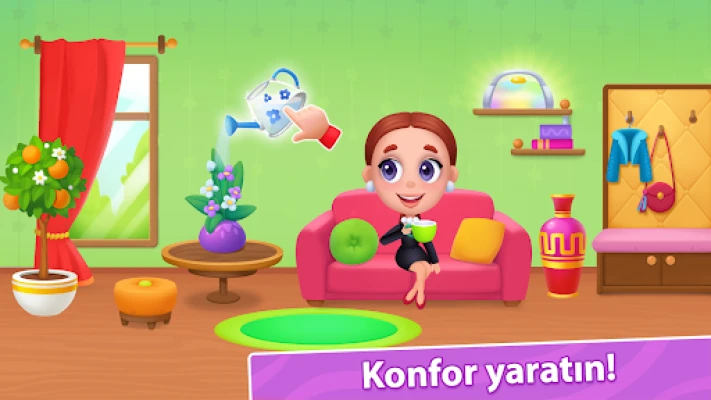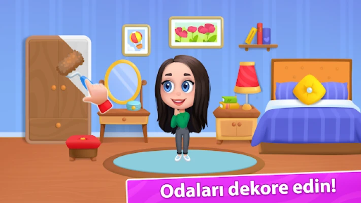 -İç tasarımı değiştirin: Odaları dekore edin, dekoru değiştirin, mobilyaları boyayın - beğeninize göre bir ortam yaratın! Hayalinizdeki ev tasarımıyla bir ev yapın.
