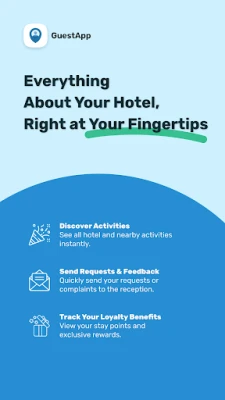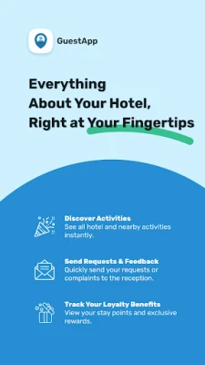 1- See the events inside and around the hotels. 2- See the hotel activities. 3- Send requests or file a complaint to the hotels reception desk 4- See the loyalty information of the guest inside the hotel he’s staying in.