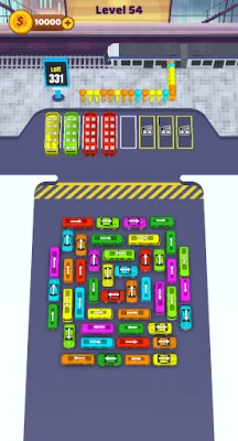 🎨 Canlı Renkler ve Eğlenceli Temalar: Renkli otobüsler ve yolcularla dolu canlı bir otoparkta gezinin.