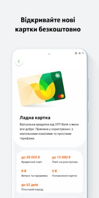 - відкривайте безплатні картки за хвилину — віртуальну «Ладну», валютну або картку Національний кешбек