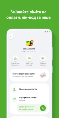 - переказуйте кошти, змінюйте добові ліміти на оплати, пін-код та блокуйте картку в разі потреби