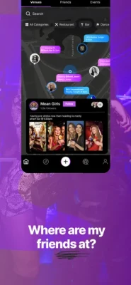 - Venues can cast updates for their upcoming events & updates on the map and via their business profile.