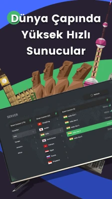 Bir dokunuşta bağlantı. Panda, bulunduğunuz yere göre size en iyi sunucuları önerir. İstediğiniz herhangi bir sunucuya bağlanabilirsiniz. Panda şu an itibariyle Amerika, Asya ve Avrupa’da çok sayıda sunucuya sahiptir ve bu sayı giderek artmaktadır.