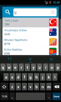 - Listeden herhangi bir para girilen tutarın Dönüşüm;