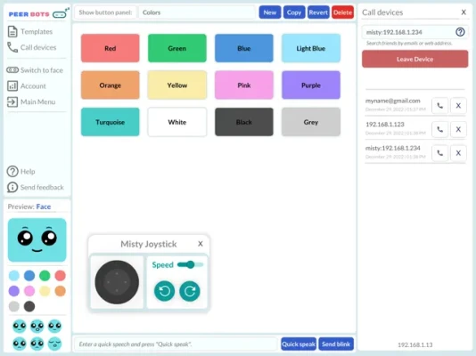 The PEERbots app is an open-source social robot and controller platform aimed at bringing the benefits and joys of social robots to a broad audience. This tool may be used to support wellness programming, communication, education, research, entertainment or whatever makes the world a better place!