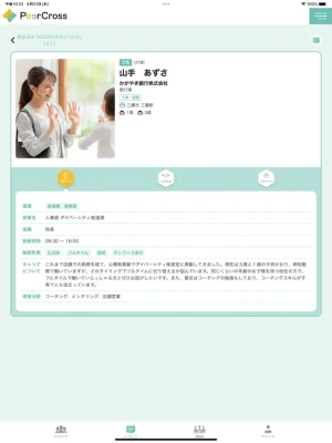 ・PeerCrossから、価値観・境遇の近しい方をアプリ上で数名レコメンドし、スワイプ操作で簡単に「会いたい」社外のワーキングマザーに出会うことができます。クローズドなネットワーキングのため、心理的安全性がある中で、安心してご利用いただくことができます。