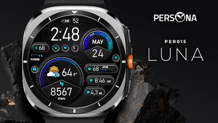 "PER015 Luna" is a digital watch face for Wear OS designed by PERSONA