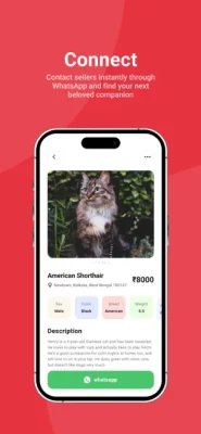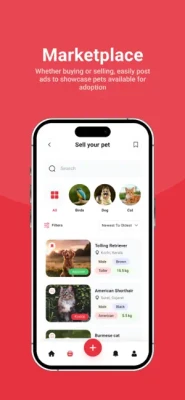 1. Explore Pet Marketplace: Browse a variety of pets for sale, from cuddly cats to exotic reptiles, and discover your ideal pet companion.