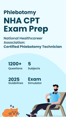 Get ready for the NHA Certified Phlebotomy Technician (CPT) exam with an interactive study app designed to help you succeed. Access 1,000+ practice questions, take realistic practice tests, and track your progress with personalized study tools.