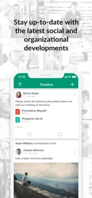 Share new knowledge, ideas and internal successes quickly and easily with the rest of your team, department or organization. Enrich messages with pictures, videos and emoticons. Simply keep track of new posts from your colleagues and news from your organization.