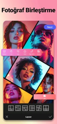 Aralarından seçim yapabileceğiniz çeşitli ızgara düzenleri ve şablonlar. Izgara özelliği ile saniyeler içinde kare fotoğraf kolajı oluşturun. Sadece birkaç resim seçin, kolaj oluşturucu onları benzersiz fotoğraf kolajına dönüştürecektir. Beğendiğiniz düzeni seçebilir, kolajı filtre, çıkartma ve metinle düzenleyebilirsiniz. Resim kolajı oluşturmak için 9 adede kadar fotoğrafı birleştirin, resimleri döndürebilir, çerçeveleri ayarlayabilir, kolaj kenarlığını düzenleyebilir, arka plan rengini istediğiniz gibi değiştirebilirsiniz.