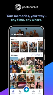 Photobucket is an easy-to-use, and more affordable, photo storage and video storage option compared to the big-name cloud storage companies. Our powerful platform lets you save, edit, title and tag, organize and share your memories with all your friends, regardless of what phone they use. The Auto Backup feature in our mobile app constantly updates your photos and videos, and keeps your smartphone, laptop and desktop in sync. And our compression-free guarantee promises that the quality of what you upload and what you download never changes.