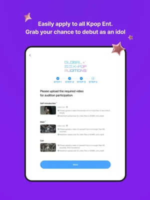 Global auditions are held online in conjunction with famous Korean entertainment companies, and you can submit videos and check results through the app.