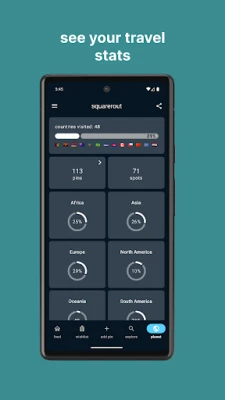 Your profile includes your planet that shows all of your pins in each country at once. The profile also includes your travel stats including percentage of the world’s countries and percentage of the world’s continents.