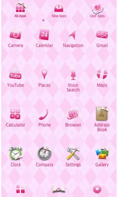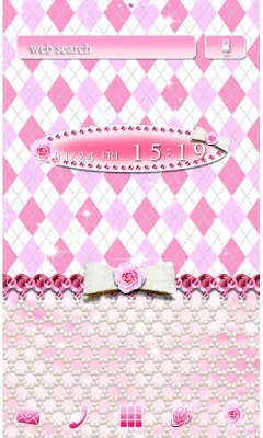 This pink argyle Theme will make your phone super stylish! The pearl, flower and ribbon accents give it a bright touch!