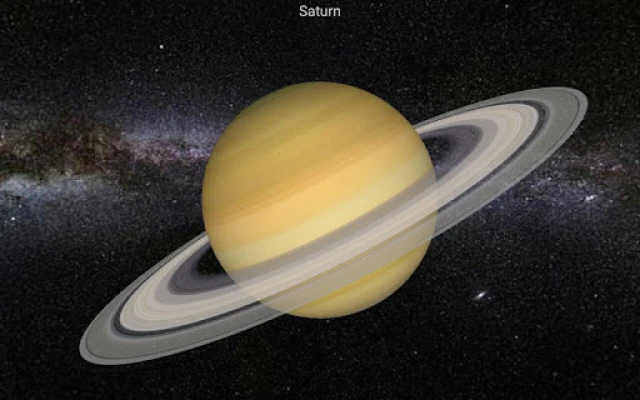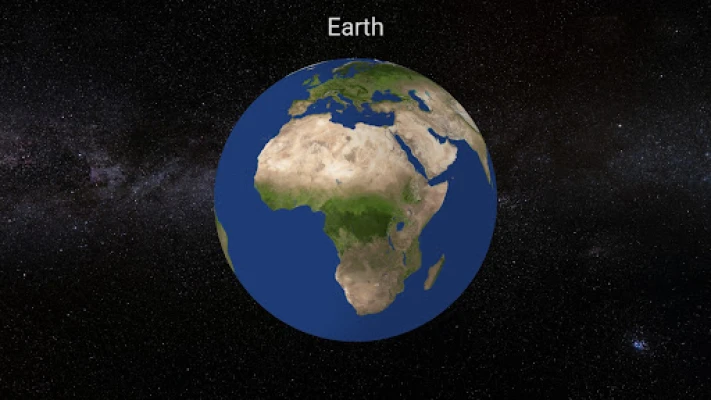 Once the application is started (the planets will show up in the center of your screen and the Milky Way galaxy in the background), you may tap on any planet of our solar system to see it in greater detail. After that, you can rotate the planet, or zoom in or out, as you please. The upper buttons let you, in order from the left, to come back to the main screen, to display some basic information about the currently selected planet, to see a few pictures of the planet's surface or to access the main Menu. Settings allows you to enable or disable the axial Rotation, Gyroscopic effect, Voice, Background Music, and Orbits.