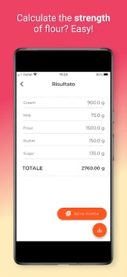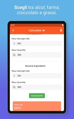 Vuoi realizzare un impasto con due farine diverse e vuoi conoscere il W finale? Pocket Chef realizzerà il calcolo per te.