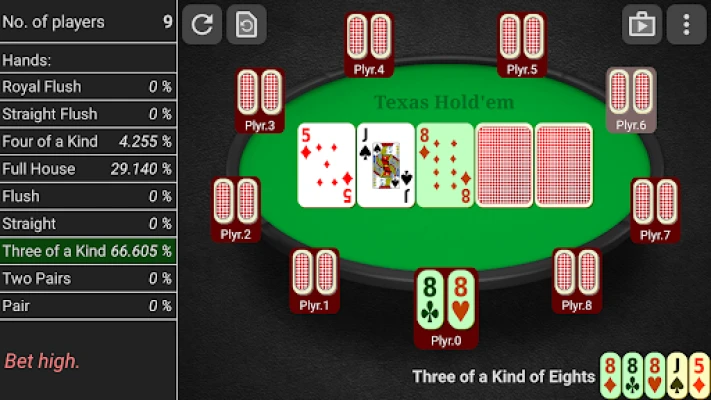 In the Premium version you can switch to other games, such as Omaha Hold'em and 5-card Draw, and the ads are removed. The game starts when you set the number of players.