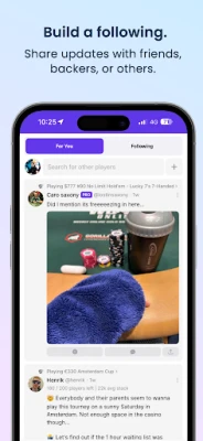 - Social Connectivity: Share live updates, chip graphs, and tournament results with friends or select followers.